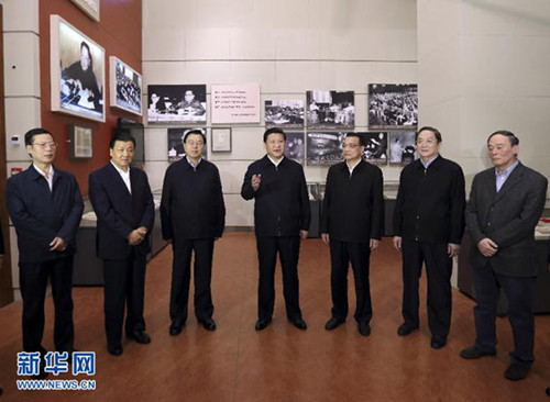 昨天,习近平、李克强、张德江、俞正声、刘云山、王岐山、张高丽等在国家博物馆,参观《复兴之路》展览。 新华社发