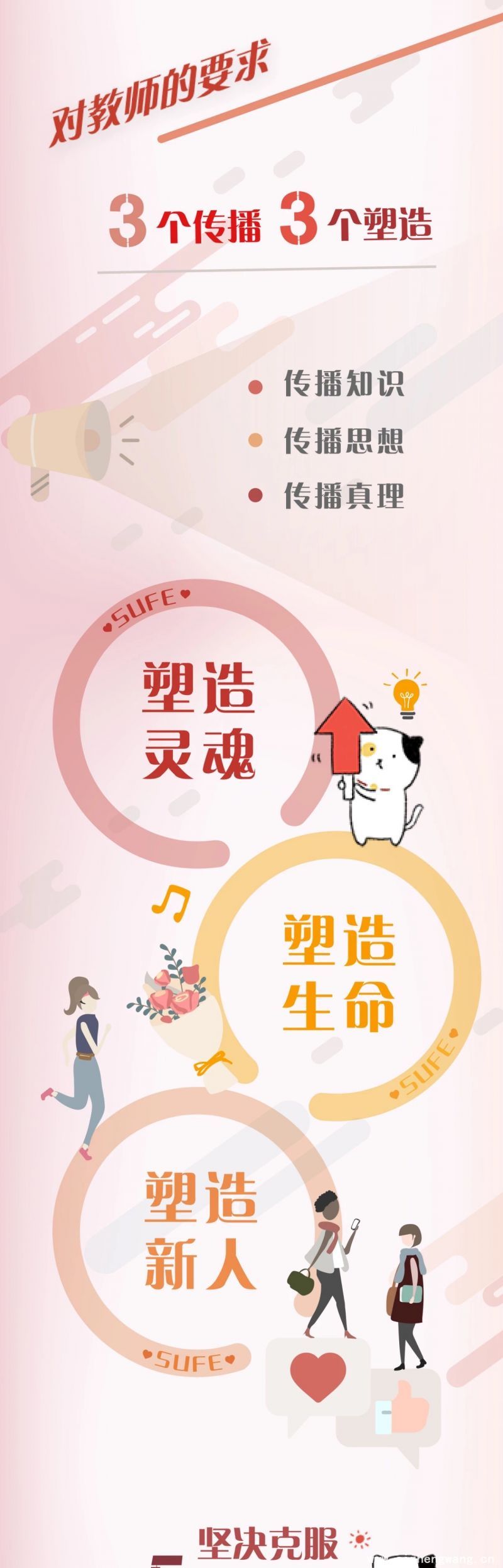 “转语态”,创新宣传方式。制作学校特色的《跟着SUFE一张图学习全国教育大会精神》长图,将师生熟悉的官微吉祥物上财喵与教育大会的核心内容相结合,使学习生动亲切。推出“学习全国教育大会精神进行时”H5知识小测验,共吸引师生1756人次参与。借助新式话语方式和传播技术对互联网时代的党员师生进行理论教育,增强宣传工作的有效性和感染力。(作者:李卫)