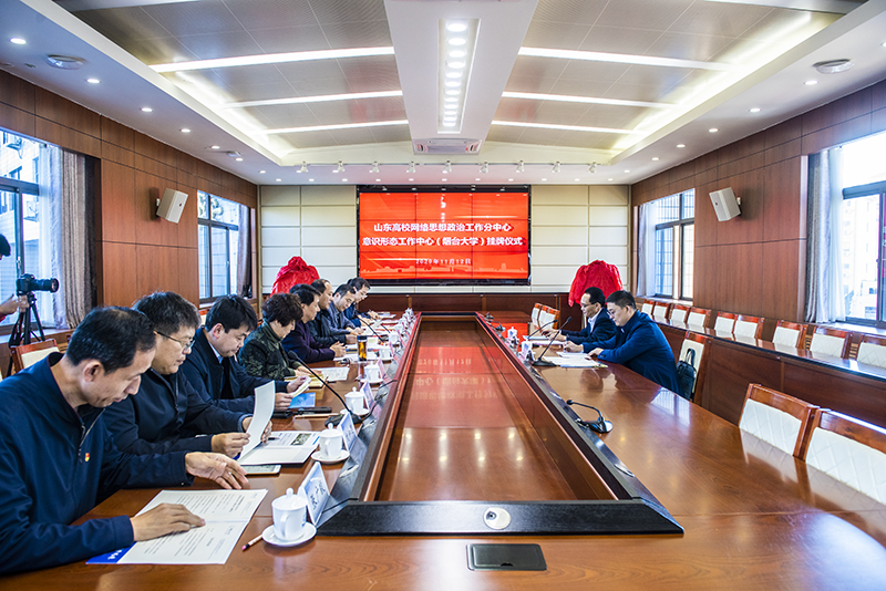 11月12日上午,山东省高校网络思想政治工作分中心——意识形态工作中心(烟台大学)暨烟台大学网络思想政治工作中心在烟台揭牌成立。山东省高校德育研究中心(山东省高校网络思想政治工作中心)主任、山东师范大学党委宣传部部长、山东省高校思想政治教育研究会秘书长姚昌,烟台大学党委常委、纪委书记、省监委驻烟台大学监察专员周胜良出席并发表讲话。烟台大学党委常委、党委宣传部(教师工作部)部长于秀国主持,烟台大学有关部门负责人及部分学院书记参加揭牌仪式。