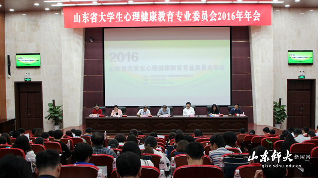 5月25日至26日,山东省大学生心理健康教育专业委员会2016年年会在济南举行。年会以“新发展理念下的大学生心理健康教育工作”为主题,主要任务是总结交流我省大学生心理健康教育工作的经验和做法,探讨进一步加强和改进工作的新思路、新举措。年会由省委高校工委和山东省大学生心理健康教育专业委员会主办,山东师范大学承办。5月25日上午,年会开幕式在山东师范大学千佛山校区举行。省委高校工委宣教处处长刘欣堂,山东师范大学党委副书记向来生,副校长、专委会第四届委员会主任委员张文新,省委高校工委宣教处副处长王意茹出席活动并在主席台就坐。