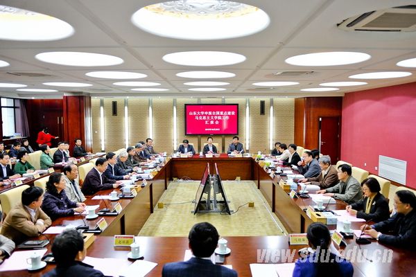 10月28日至29日,中宣部考察组一行到山东大学实地考察学校申报全国重点马克思主义学院相关工作。山东大学在中心校区明德楼分别召开申报全国重点马克思主义学院工作汇报会和座谈会。校长张荣出席汇报会并代表学校就马克思主义学院建设情况向考察组作了汇报。
