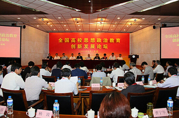 为深入学习贯彻党的十八大精神,进一步加强和改进大学生思想政治教育工作,持续推进思想政治教育学科建设与实践创新,全面提升大学生思想政治教育质量,在教育部思想政治工作司指导下,由全国高校思想政治教育研究会和《思想教育研究》编辑部联合主办,云南大学承办的2013年全国高校思想政治教育创新发展论坛于6月6日—7日在昆明举行。创新论坛的主题是:以十八大精神为指导,全面提升大学思想政治教育质量,为实现中华民族伟大复兴的中国梦提供学理支撑。