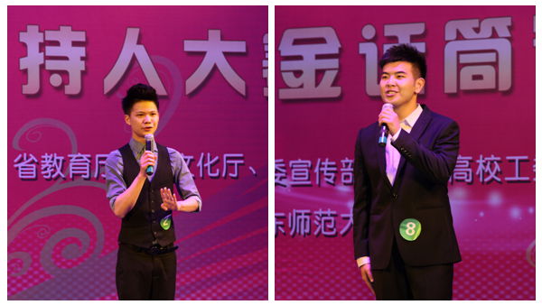 来自全省48所高校的95名选手报名参赛,经过复赛的激烈争夺, 12所高校的15名同学脱颖而出,成功晋级决赛。决赛现场,山东师范大学传媒学院的同学们带来的欢快热烈的开场舞《让我们舞起来》,以动感的旋律、青春的舞步拉开了比赛的帷幕,将观众的热情和参赛选手的激情一同点燃。在闪亮登场环节,参赛选手结合VCR和才艺展示精彩亮相;在模拟主持环节,参赛选手结合随机抽到的一组关键词自选节目类型进行主持,多彩的形式、幽默的语言、睿智的思想交相辉映,赢得台下阵阵掌声;在赛场争雄环节,参赛选手两人一组进行主题辩论,他们观点鲜明、逻辑严密、反应敏捷、表达流畅,给在场的每一位观众留下了深刻的印象;在综合知识问答环节,选手们表现出色,展示出丰厚的知识积累及较高的传媒素养;在即兴采访环节,参赛选手随机与山东师范大学第12届研究生支教团成员、校研究生会主席侯晓冉,2012中国大学生自强之星、国际交流学院学生暨明敏,两届央视五四全国大学生校园文艺汇演参演者、全国第六届校园金话筒主持人大赛山东赛区一等奖获得者、传媒学院学生蒋博文组成采访组合,全面考察了参赛选手的知识储备、综合实力和应变能力。比赛期间,山东师范大学音乐学院的同学们还为观众带来了旋律优美的青春励志歌曲。山东师范大学传媒学院播音主持系主任刘静敏教授对大赛进行了精彩点评。整场比赛精彩纷呈,掌声、喝彩声不断,气氛异常热烈。