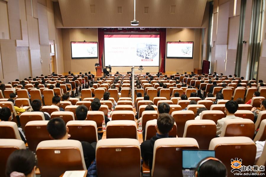 宣讲会在山东大学中心校区设置主会场,威海校区、青岛校区设视频分会场。省委副秘书长、政研室主任、改革办副主任田卫东,省委副秘书长张祚亭,省委教育工委常务副书记、省教育厅厅长邓云锋,山大党委副书记陈向阳、王君松、陈宏伟,副校长芦延华、刘建亚等出席活动。山东大学职能部门主要负责人、二级单位党委书记、马克思主义学院教师代表、形势政策课教师代表、学生代表等参加活动。(山东大学)