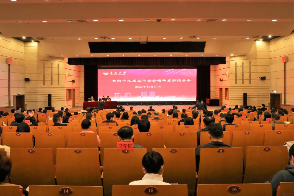 胡金焱强调,蓝图已绘就,奋进正当时。学习领会好、宣传贯彻好习近平总书记重要讲话精神和全会精神,是当前和今后一个时期全校上下的一项重大政治任务。各级党组织要提高政治站位,增强政治自觉,迅速掀起学习宣传热潮,全面系统深入学习领会五中全会精神,坚持原原本本学、领导带头学、联系实际学,确保全会各项决策部署落实落地,奋力谱写青岛大学高质量发展新篇章。