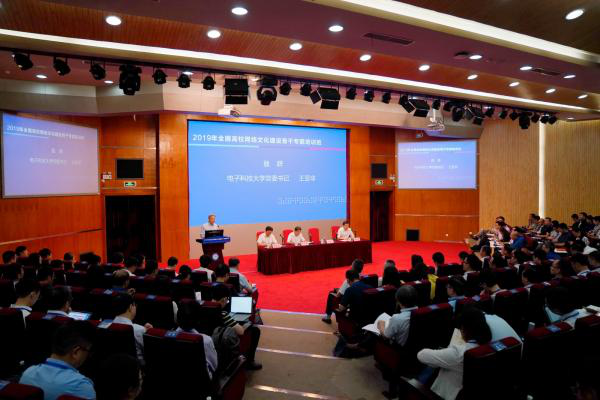 推进会的前一天,由教育部思想政治工作司、中央网信办网络社会工作局主办,电子科技大学、四川省委教育工委、四川省网信办、中国大学生在线、易班网、文汇报社协办的“2019年全国高校网络文化建设骨干专题培训班”在该校清水河校区经管楼报告厅举行。教育部思想政治工作司副司长张文斌,四川省委教育工委副书记、教育厅党组成员刘立云,电子科技大学党委书记王亚非出席开班式。