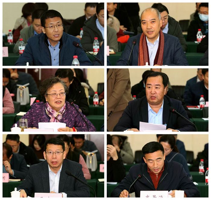 马克思主义学部部长王增福,文学院院长孙书文,新闻与传媒学院教授李掖平,校纪委副书记王发科,党委常委、宣传部部长于晓明,社会科学处处长高景海,学生工作部(武装部)部长吕晓勇,期刊社社长王晓华,山东省齐鲁文化研究院院长吕文明,马克思主义学部硕士研究生马会闰分别围绕“深入学习贯彻习近平文化思想的着力点”“为中华民族伟大复兴贡献文化力量”“学习贯彻习近平文化思想 助力社会主义文化强国建设”“认真贯彻落实习近平文化思想 进一步做好廉洁文化建设工作”“提升新闻舆论’四力’ 巩固壮大主流思想舆论”等主题依次作了交流发言。主题发言既有对习近平文化思想学理化的阐释,也有对深入贯彻落实习近平文化思想的工作思考,大家一致表示,要用习近平文化思想武装头脑、指导实践、推动工作,以更加奋发有为的姿态担负起高校新时代文化使命。