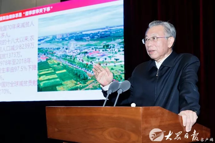 为深入学习宣传贯彻党的十九届四中全会精神,今天上午,省委书记刘家义来到山东农业大学宣讲全会精神,与学校师生一起,共话中国特色社会主义制度和国家治理体系发展的历史性成就、显著优势,展望祖国发展的美好未来。刘家义在宣讲时说,党的十九届四中全会是一次具有开创性、里程碑意义的重要会议。全会通过的《决定》,深入回答了在我国国家制度和国家治理体系上“坚持和巩固什么、完善和发展什么”这个重大政治问题,是一篇...